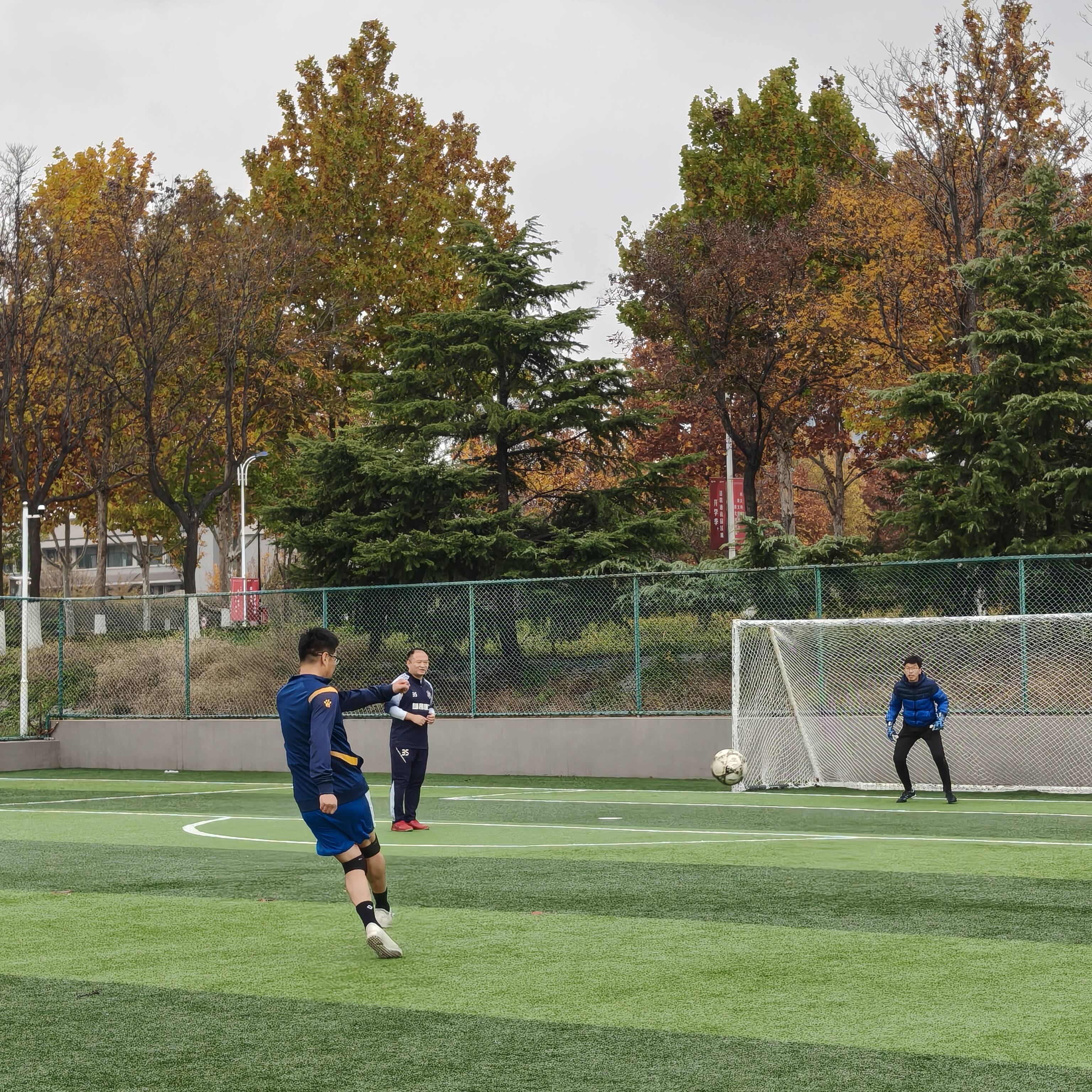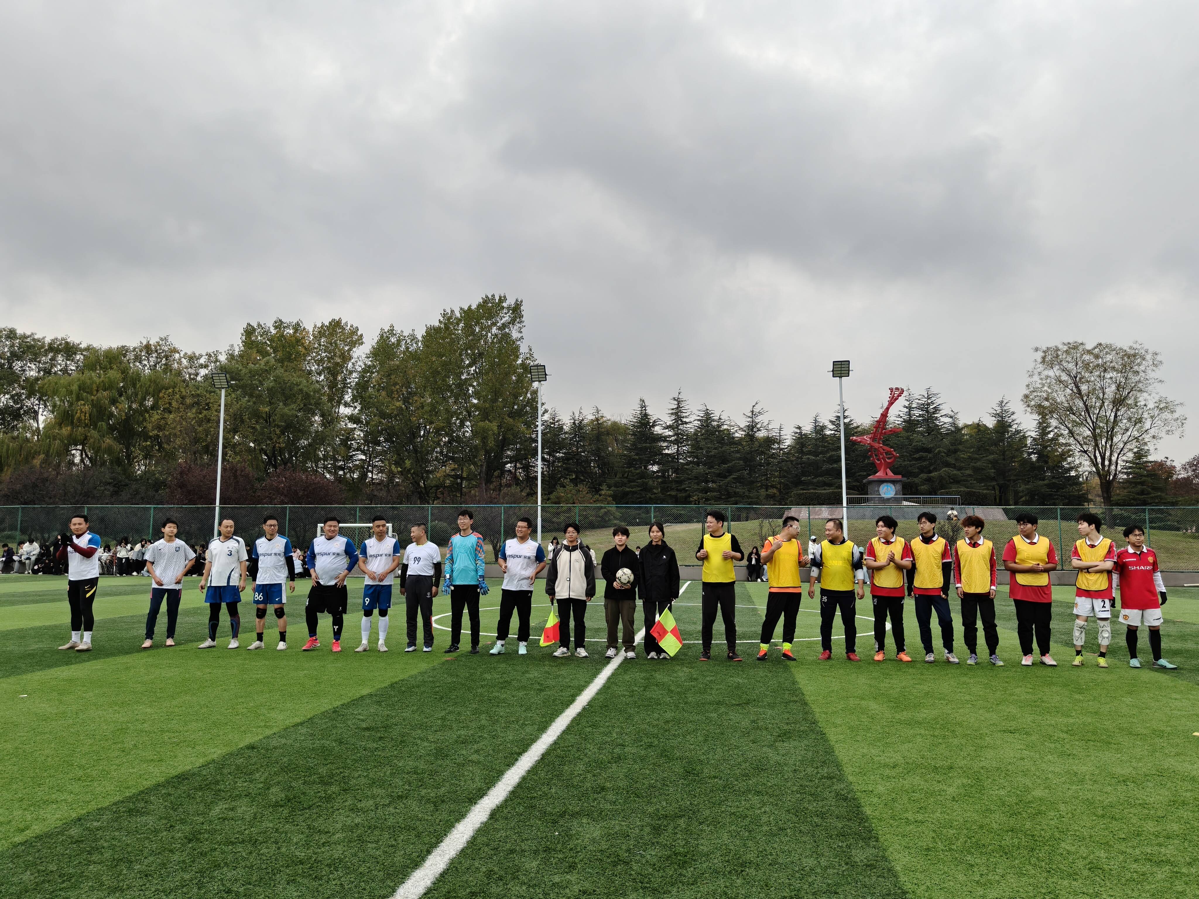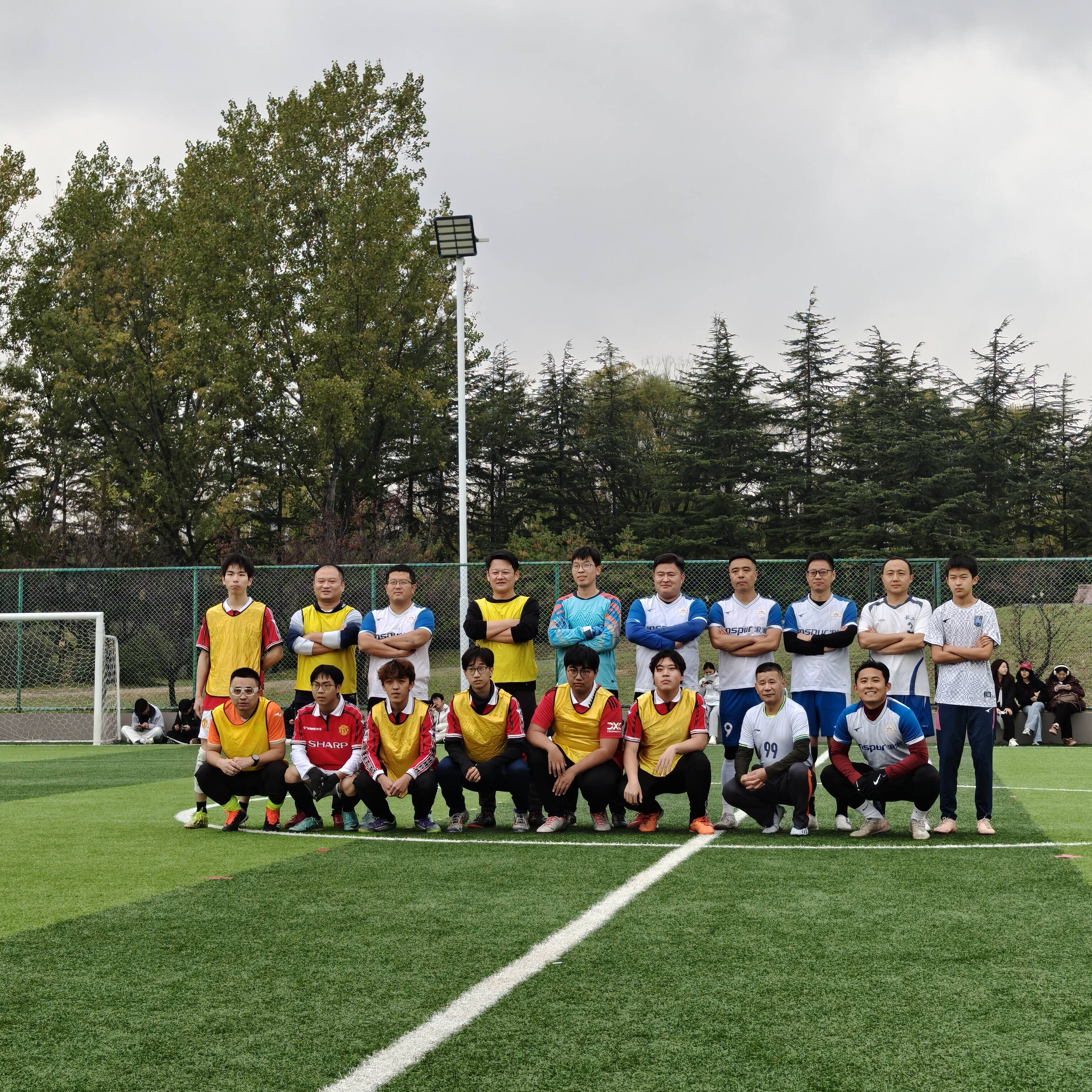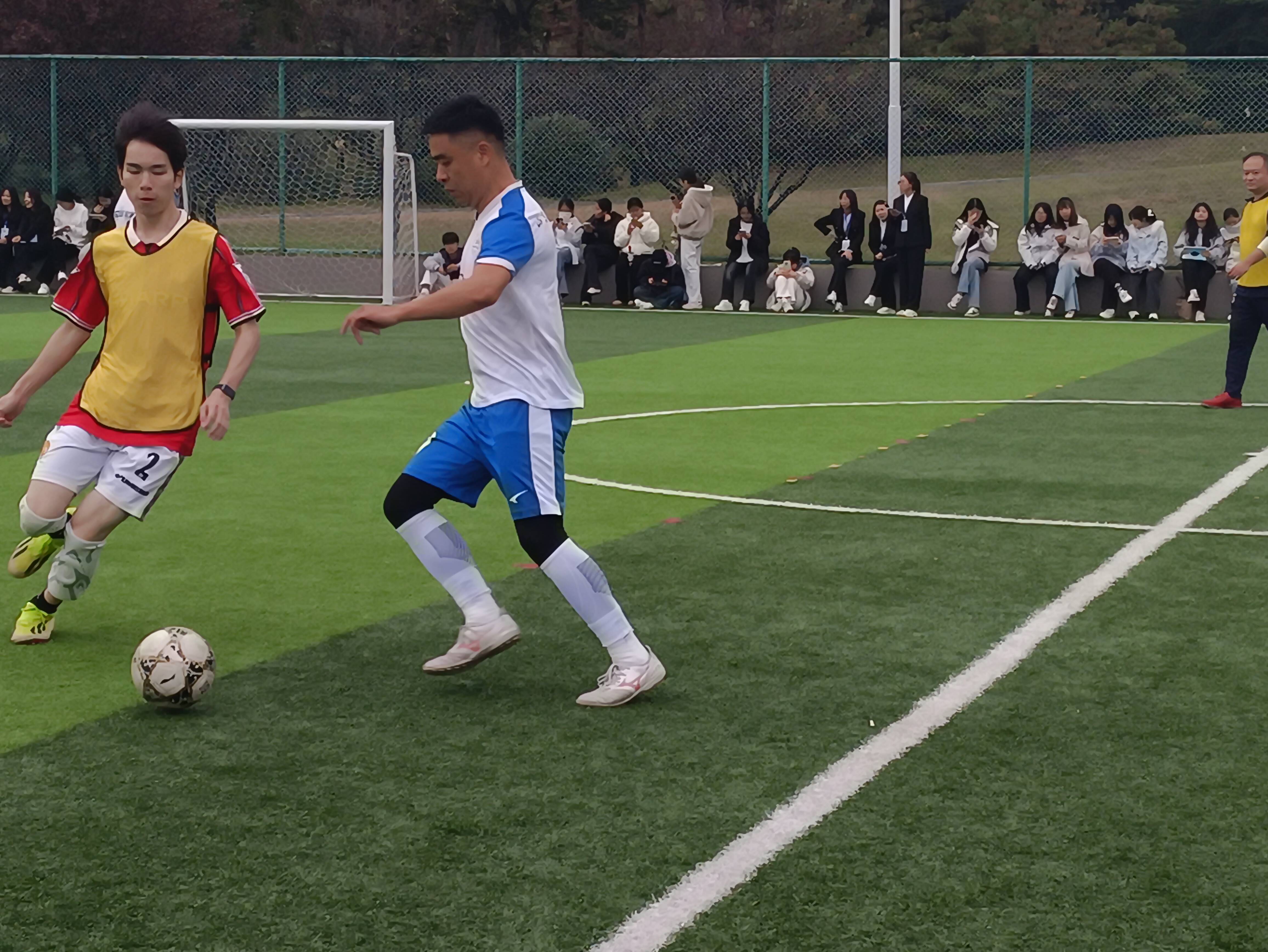 开幕式结束后,备受期待的师生足球友谊赛率先登场。学校教职工足球队的老师们和外国语学院毕业的校友们迅速进入状态,在绿茵场上展开了一场充满激情与活力的角逐。比赛过程中,双方球员配合默契,攻防转换节奏明快。赛场边,观赛师生的呐喊声,加油声此起彼伏。最终,比赛在友好竞争的氛围中圆满结束。