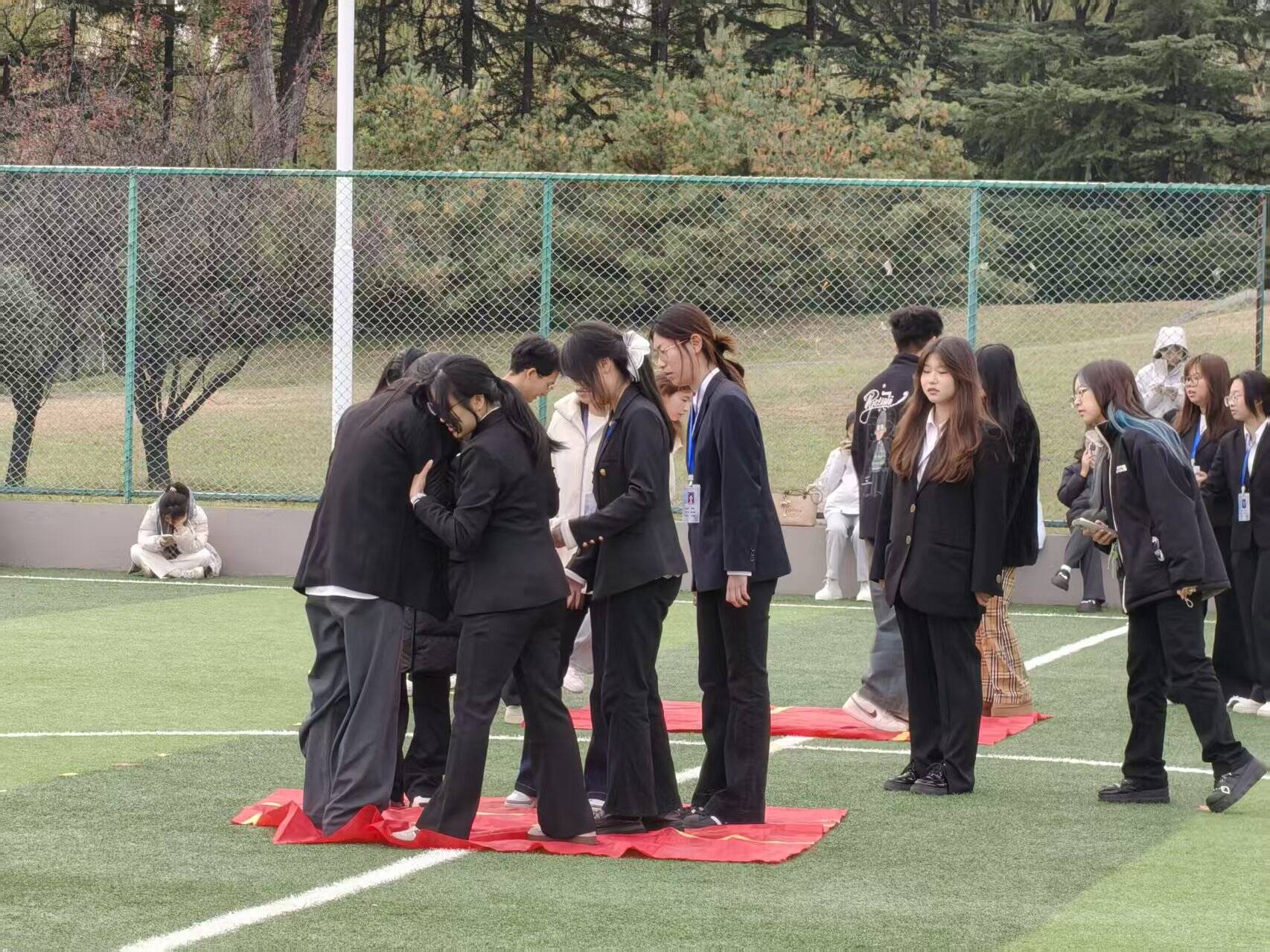 师生足球友谊赛圆满落幕后,“诺亚方舟 —— 共渡难关”“抢凳子”“趣味障碍接力赛” 三大趣味比赛项目依次开展。队员们状态昂扬,充分彰显出积极参与、奋勇争先的精神。现场氛围热烈浓厚,师生参与热情高涨。这份兼具紧张竞技感与欢乐互动感的氛围,深刻感染着每一位在场者,让整个运动场充盈着青春活力与集体凝聚力。
