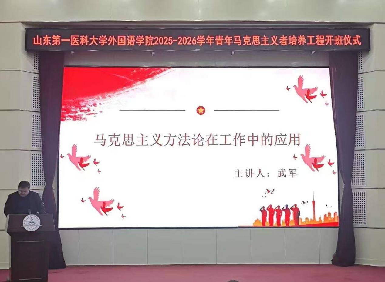 为深入学习宣传贯彻党的二十届四中全会精神,落实习近平总书记关于青年工作的重要思想,11月4日下午,外国语学院在图书馆报告厅举行青年马克思主义者培养工程暨团学骨干培训班开班仪式。本次会议以培养信仰坚定、能力突出的青年政治骨干为目标,助力学员筑牢思想根基、锤炼过硬本领,成长为新时代合格的青年马克思主义者。