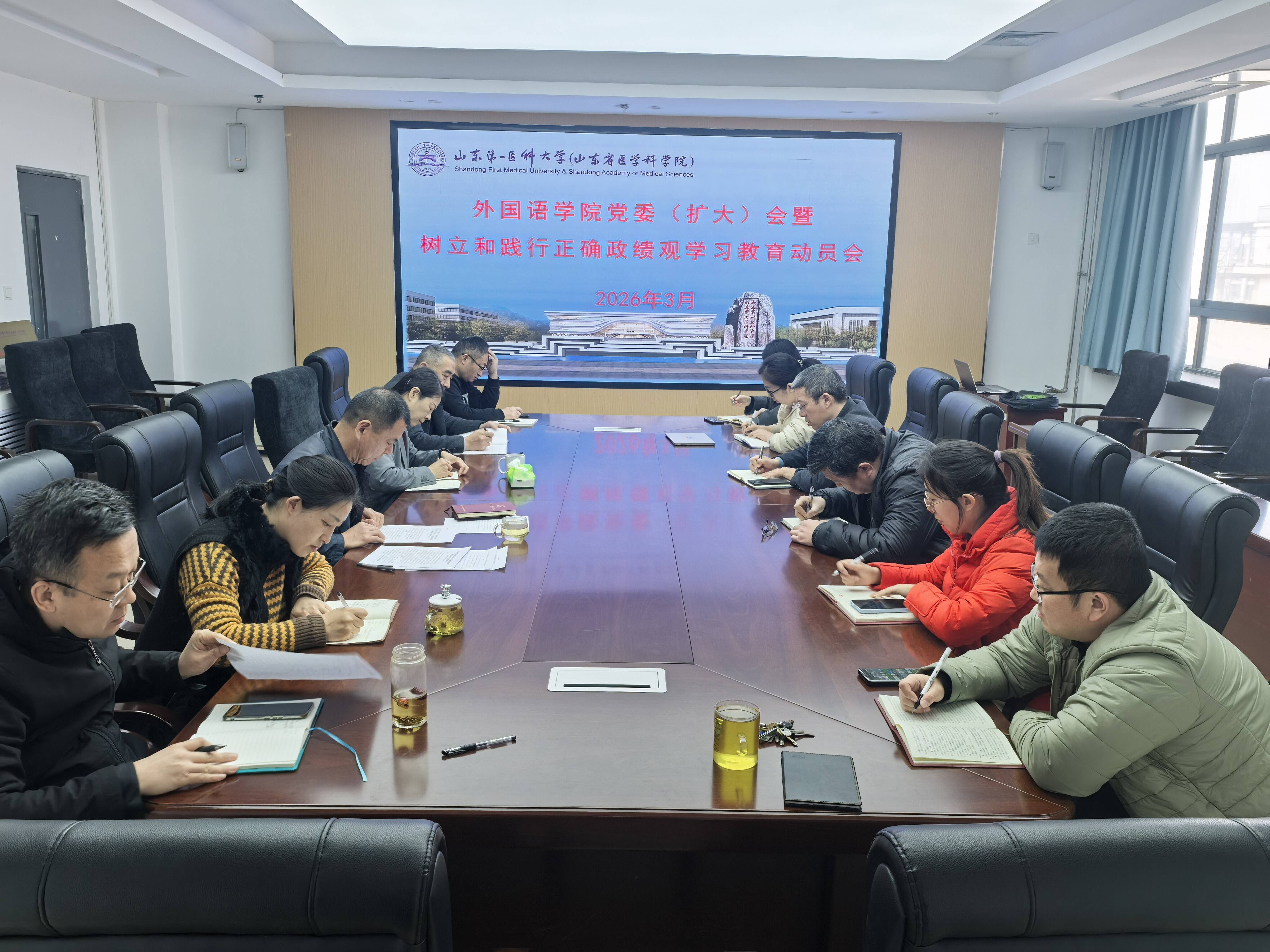 为深入学习贯彻习近平总书记关于树立和践行正确政绩观学习教育的重要讲话、重要指示精神,全面落实校(院)党委的部署要求,统一思想、凝聚共识,3月13日,外国语学院召开党委(扩大)会议暨树立和践行正确政绩观学习教育动员会。学院党政班子成员、各党支部书记、科级干部出席了会议。学院党委书记褚学军主持会议并作动员讲话。