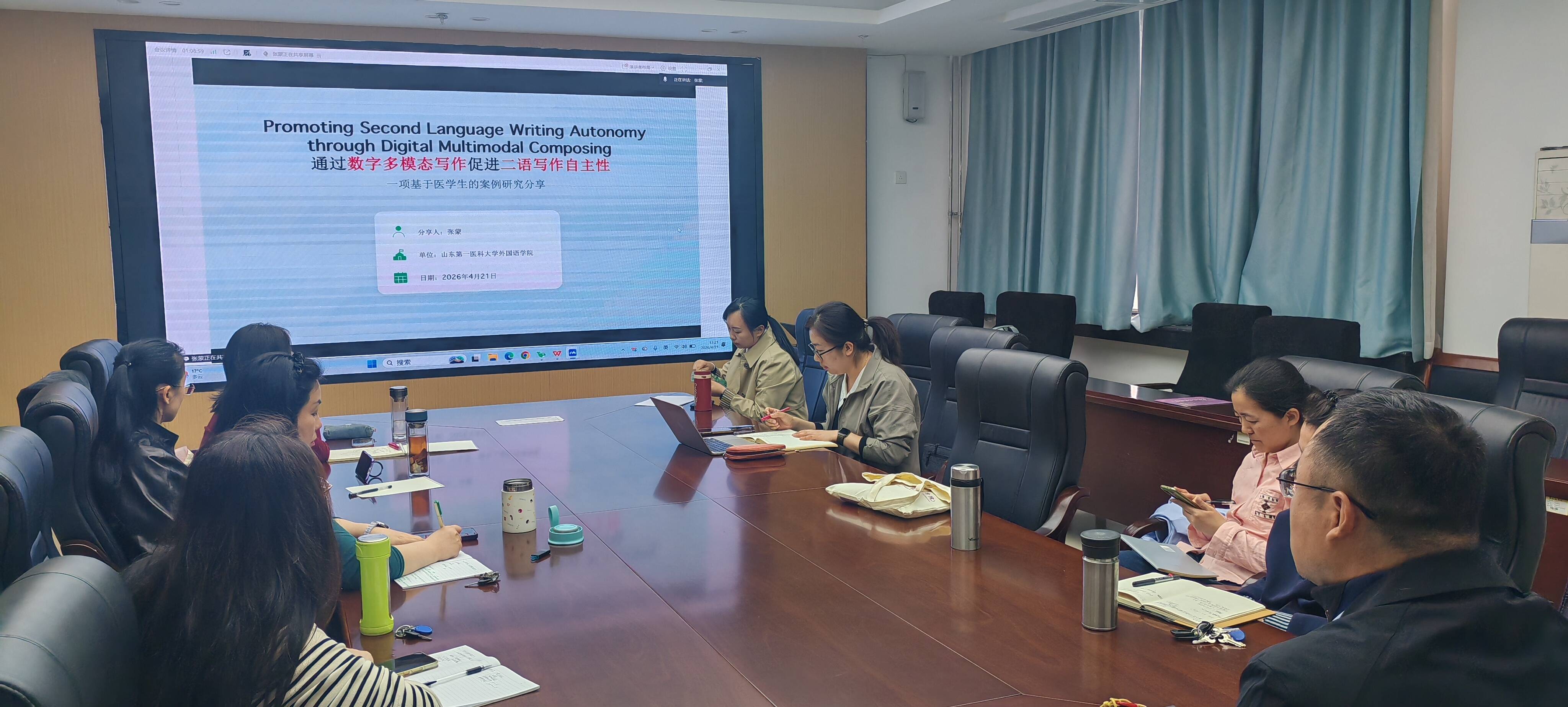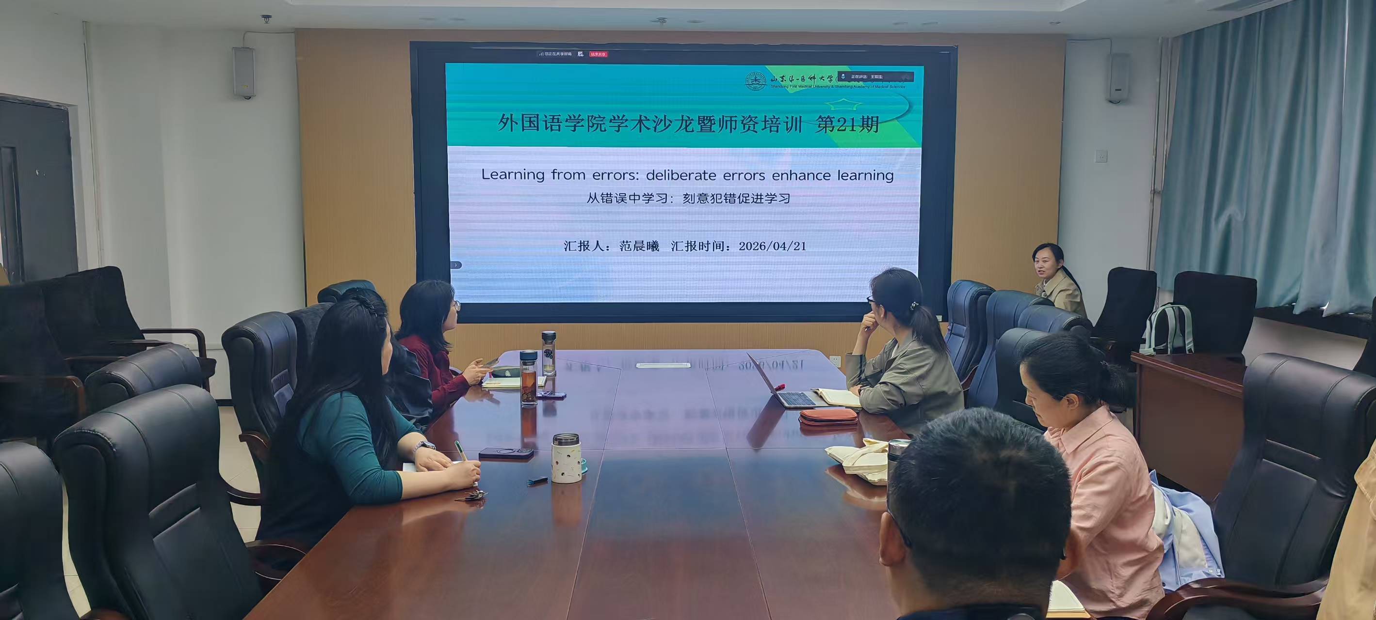 4月21日,第二十一期外国语学院学术沙龙暨师资培训在学院会议室举行。活动由副院长王双连教授主持,来自各教研室的二十多位教师线上线下参会。